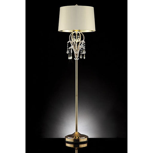 FOA WestBeautiful dangling crystals are the crown jewels of this luxurious hanging lamp. The metal base and ivory shade add to the simple yet classy design.