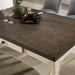 PLYMOUTH Counter Ht. Table, 60"L X 29 7/8"W X 37 3/4"H, 145.2lbs. Create a sense of comfort with this vintage ivory and dark gray table supported by turned legs. A sole storage drawer offers easy access to utensils, while the open bottom shelf is the perfect spot to display and conveniently store dinner wares. The matching bench and chairs are padded and upholstered in gray fabric, which offer a nice contrast to the lighter wood finish.