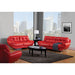 This set has unique features, such as the seat cushions tucked under the rolled arms, curved chrome legs, and double-stitching on top. Available in red, white and espresso, this seating group will add modern style to any home.