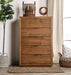 Natural inspiration and minimalism collide in this marvelous collection. A light walnut finish is evident across the pieces, with straight lines that are crisp and sleek. Barely-there finger pulls give the matching case goods their irresistible allure in a collection that is as classy as it is modest.