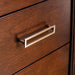 Prominently distinguish your sophisticated bedroom from everyone else's by filling the space with these refined pieces. All eyes will instantly be drawn to the diamond patterned tufting along the headboard of the bed, especially with its sleek and shiny trim, before moving on to admire the chic case goods unique handles and silver-finished accents. Complete with subtly angled legs and plenty of storage, this elegant set features a warm and inviting finish to complete its welcoming atmosphere.